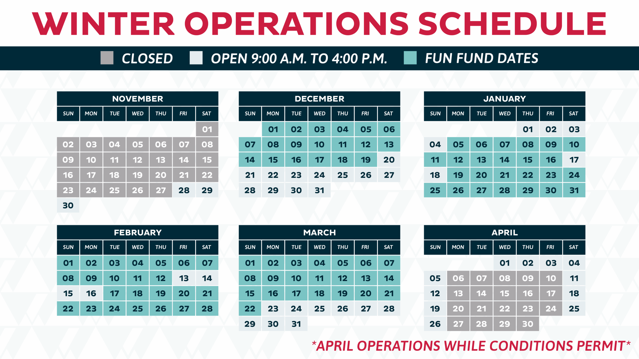 *Multi-day Tickets (3 of 4, 4 of 5, 5 of 7) will receive Fun Fund credit for the maximum amount of Fun Fund eligible ski days. You will receive your credit via email at 5am on the first day of Fun Fund eligible dates.