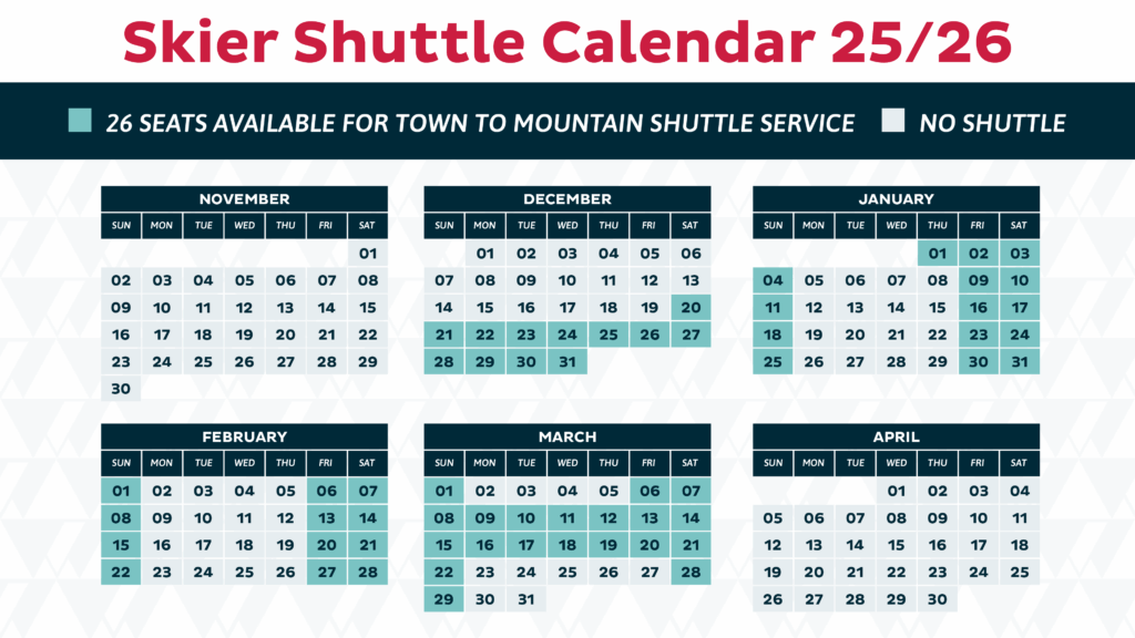 The resort offers FREE homeowner and parking lot shuttles from 8:00am – 5:00pm daily, for every day we are in mountain operations.